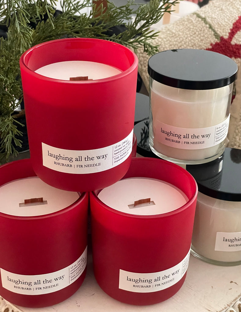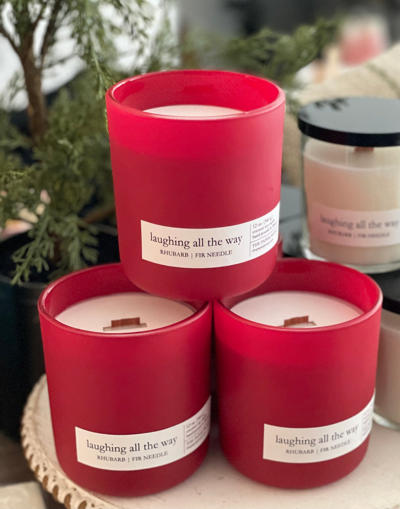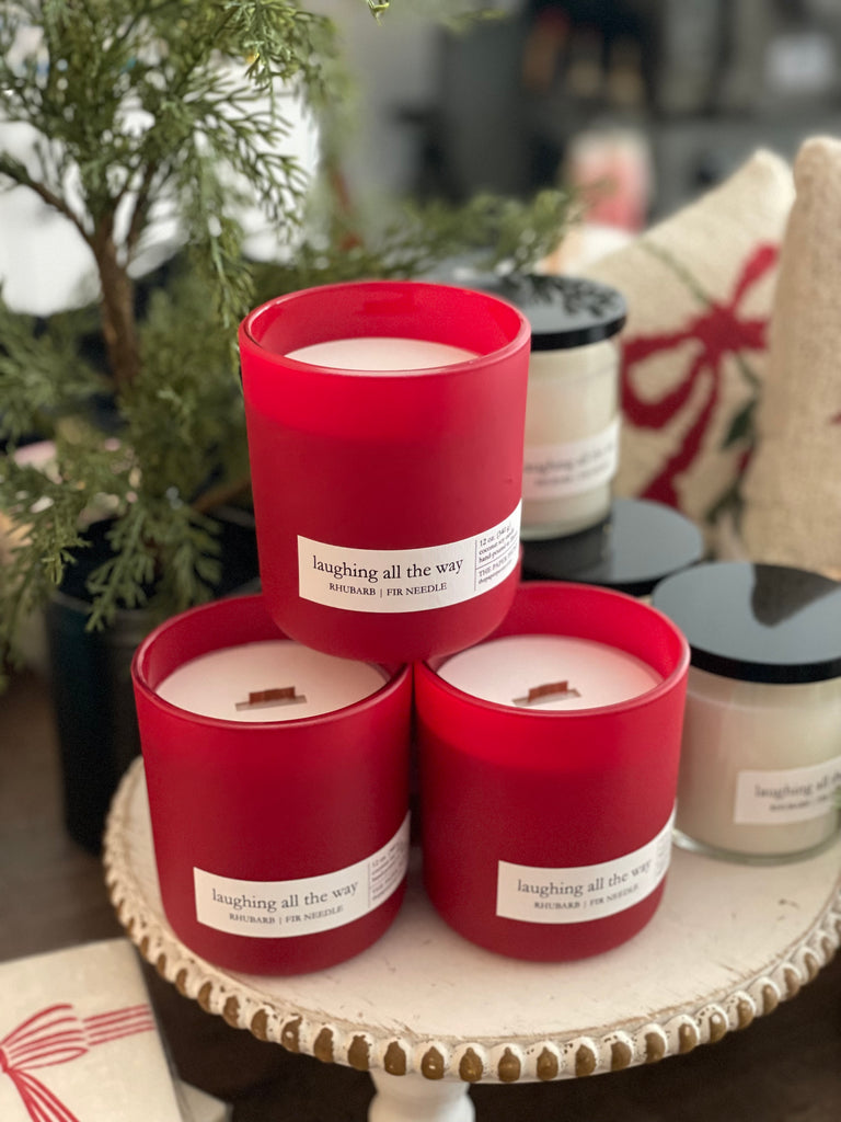 Celebrate the season with a candle that brings pure joy from the moment you strike the match. Laughing All the Way shines from a rich crimson red jar, filling your home with the tart brightness of rhubarb and the crisp freshness of pine needle. It’s cheerful, cozy, and made to spark that unmistakable holiday happiness.